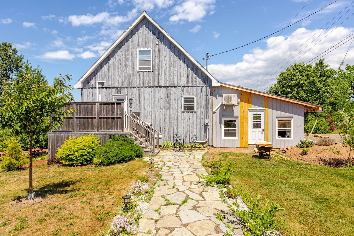 À seulement 6 minutes de l'historique Annapolis Royal. Les réservations de dernière minute sont toujours les bienvenues. Prix hors saison en vigueur. Une fois utilisé pour les calèches, je l'ai converti en une micro-maison/suite entièrement autonome. (Il dispose d'une kitchenette ; cependant, il n'est pas adapté à la cuisine complète à grande échelle.) Vue spectaculaire sur la montagne nord, nichée dans la célèbre fertile vallée de l'Annapolis. Région de pêche. Le chemin de fer a transformé le sentier naturel pratiquement de l'autre côté de la rue, parfait pour se rendre en ville à vélo.