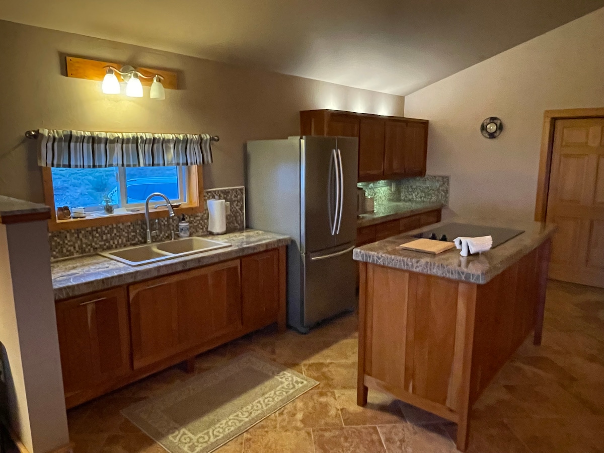 Les célibataires et les couples seront ravis de cet espace spacieux et unique. Appartement privé de 950 pieds carrés entièrement aménagé avec vue imprenable sur la rivière Madison à l'ouest, la vallée de Madison au nord et la chaîne Madison à l'est. Signal WiFi puissant et espace de bureau pour le télétravail (si nécessaire). Dressing avec tiroirs à vêtements et cintres pour tous vos besoins.