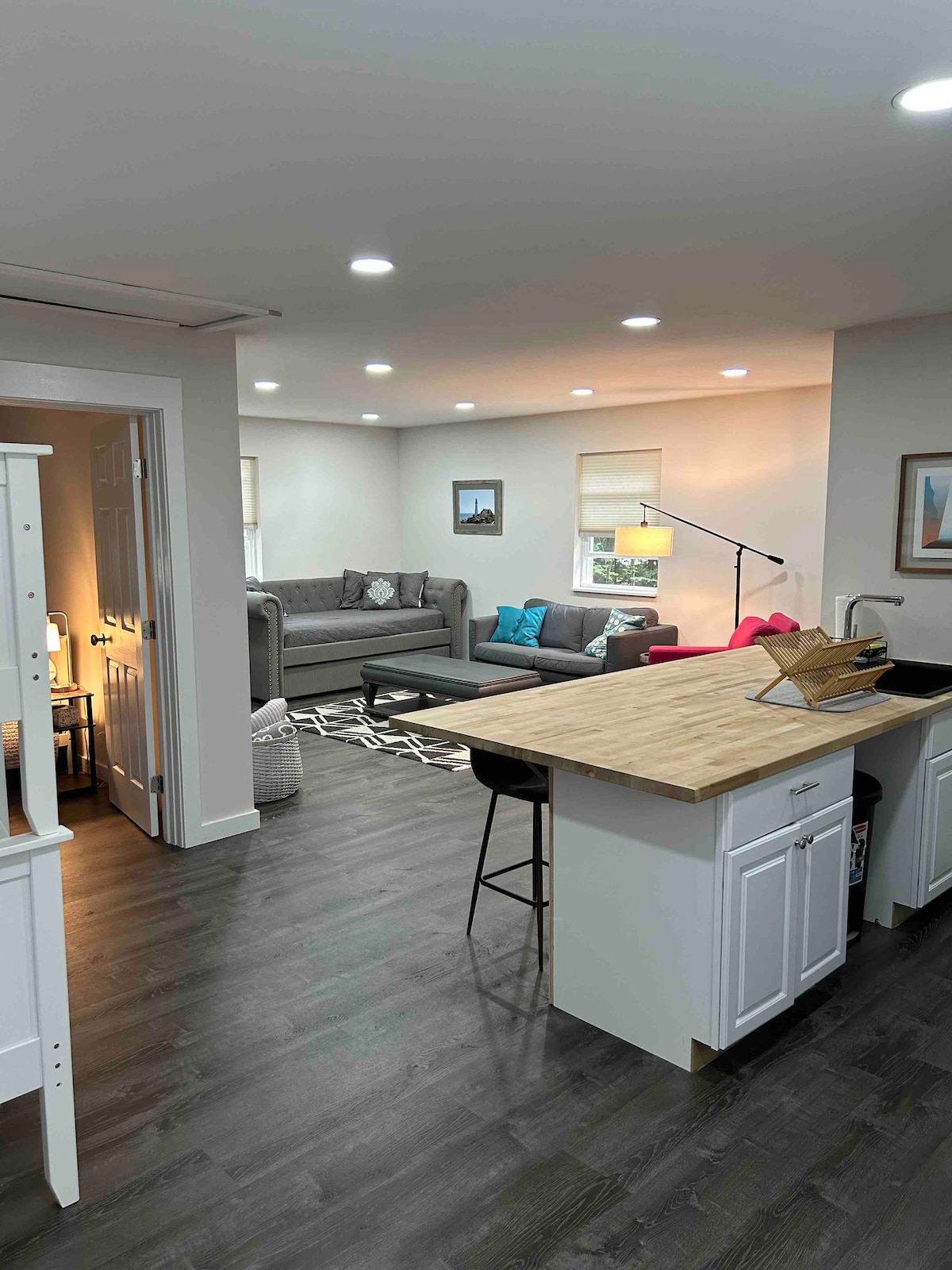 Profitez d'une escapade confortable et relaxante dans ce charmant studio au deuxième étage, détenu et exploité par une famille locale. Niché dans un quartier calme, mais à quelques minutes du centre-ville de Portland avec accès facile à l'I-95 et à l'I-295, il offre le mélange parfait de paix et de commodité. Ce studio confortable dispose d'un tout nouveau lit King Size avec un matelas et des oreillers frais, ainsi que d'une salle de bain 3/4 parfaite pour se détendre après une journée d'exploration de la ville ou de la côte.