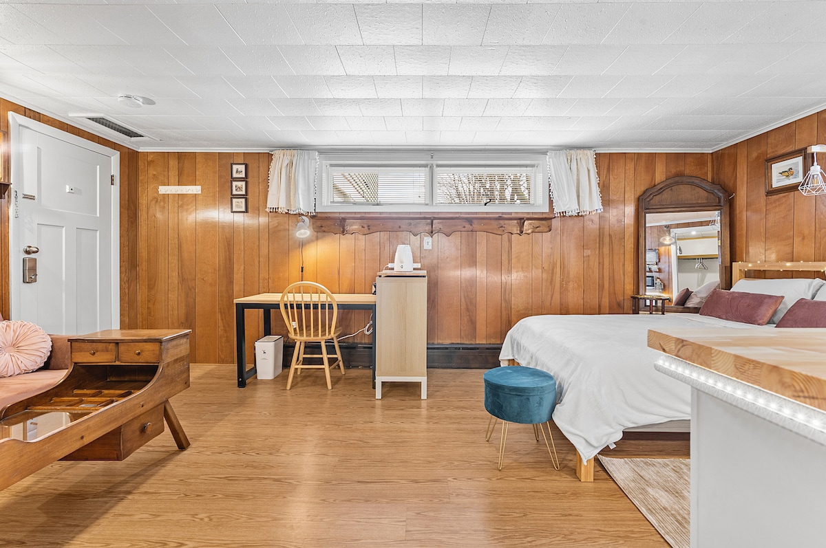 Venez pour le cadre champêtre agréable, la beauté hivernale, les équipements, le quartier, la commodité, l'intimité, l'espace et le lit confortable. Proche de nombreux sentiers de randonnée/vélo merveilleux, de pistes ferroviaires, du domaine skiable de Wachusett, de Jewel Hill, du lac Wampanoag, de la région de Kirby. WI-FI, TV (Hulu et Netflix), réfrigérateur, micro-ondes, cafetière/théière, lampes de lecture, coin repas, petit-déjeuner continental, parking... Parfait pour les couples, les voyageurs en solo et les voyageurs d'affaires. (Clavier pour une entrée sûre pendant la Covid) Tout le monde est bienvenu !