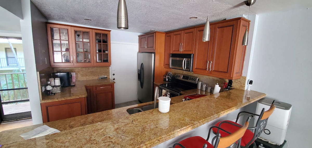 Entièrement équipé avec un lit Queen Size/une salle de bain et un canapé-lit, peut accueillir 4 personnes (de la même famille). Ce charmant appartement climatisé est situé dans un immeuble charmant, calme et bien entretenu sur l'intracoastal, à seulement un pâté de maisons de la plage, des boutiques et des restaurants de Fort Lauderdale. Wifi, télévision par câble et services de streaming et place de parking inclus, l'appartement est bien équipé avec un lave-linge et un sèche-linge et tout ce dont vous pourriez avoir besoin pour une escapade relaxante ! Désolé, pas de fêtes, pas de tabac et pas d'animaux de compagnie.
