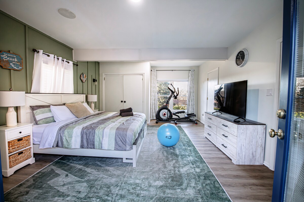 Venez vous détendre dans votre retraite dans l'arrière-cour avec une piscine privée creusée. Lorsque vous entrerez dans la propriété, vous oublierez que vous êtes juste en dehors du centre-ville. Il y a plusieurs espaces extérieurs pour se détendre, y compris un grand porche grillagé, une terrasse surdimensionnée avec espace repas, une grande cour avec chaises Adirondack et un belvédère au bord de la piscine. Cette maison dispose de deux espaces de bureau, de quatre chambres et est équipée d'équipements pour bébé pour accueillir même les plus petits voyageurs. Votre famille se sentira comme chez elle.