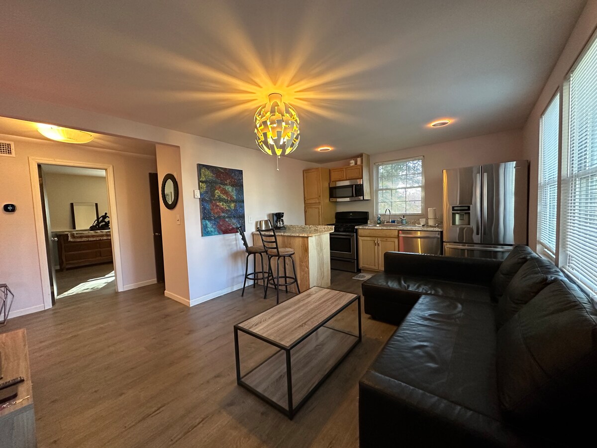 Magnifique et propre appartement d'une chambre (avec salle de bain, salon, réfrigérateur et kitchenette sans cuisinière) avec un parking facile hors rue ! Entrée privée et promenade facile jusqu'à la station de métro North de White Plains ! Idéal pour ceux qui visitent New York, qui travaillent dans des hôpitaux ou des entreprises à proximité, qui se rendent dans la ville ou qui rendent visite à une famille à Westchester ! Le canapé du salon peut devenir un futon pour dormir. Nous avons des enfants en bas âge, mais nous essayons toujours de réduire au maximum le bruit, et ils sont généralement au lit à 20 heures.