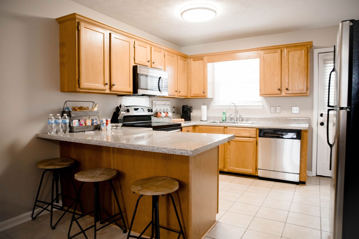 Détendez-vous en famille, même avec vos bébés à fourrure, dans une maison conçue pour votre confort et votre commodité ! Commencez votre matinée avec notre bar à café entièrement approvisionné, que vous choisissiez de siroter sur le canapé en profitant de la vue sur le paysage dans la cour arrière clôturée, ou de l'emporter avec vous pour les innombrables visites touristiques. Réduisez les trajets, nous sommes situés à quelques minutes de l'I-75 ! Voyagez 20 minutes jusqu'à Chattanooga ou Dalton. Terminez votre journée en vous relaxant au son du bois qui crépite dans le foyer ou en jouant à des jeux de société en famille !