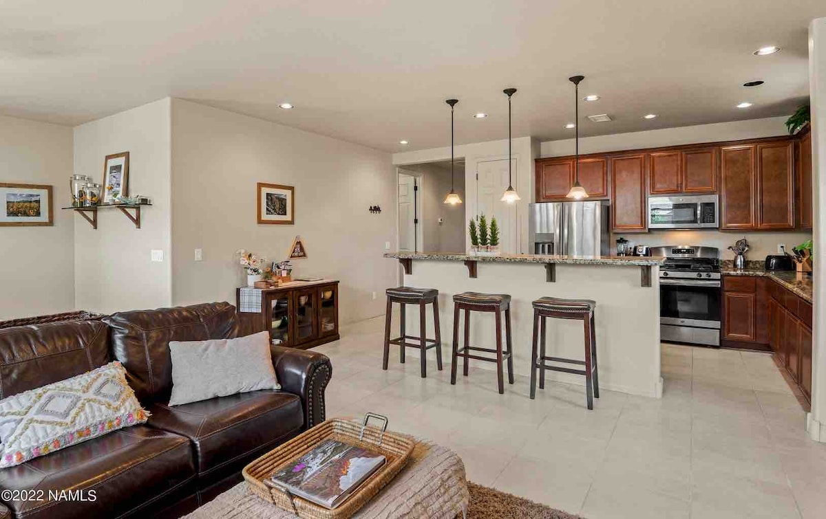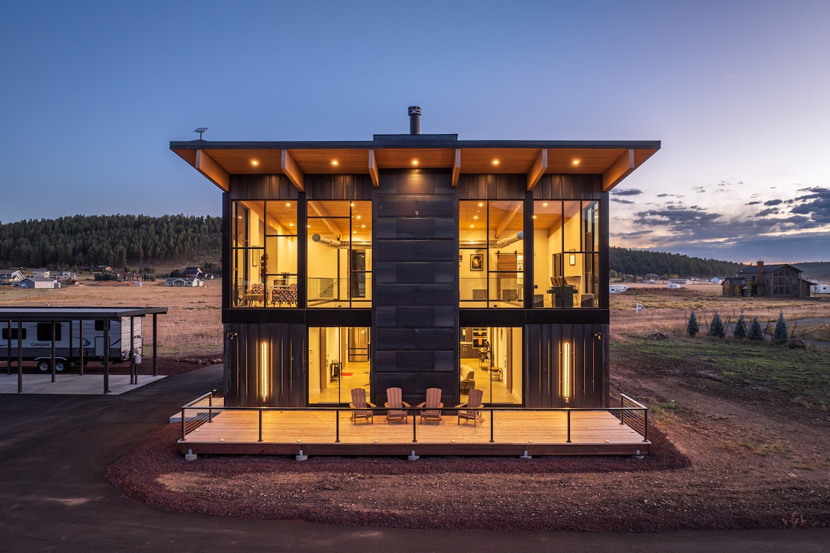 Escape to our modern 3BR mountain retreat on 2 private acres with panoramic San Francisco Peak views! This family-friendly home comfortably sleeps 7 and features a barrel sauna, game room with arcade and shuffleboard, and a unique Connex box bar. Enjoy stunning vistas from 30-ft windows, a chef's kitchen, and starlit decks. Perfect for a memorable getaway with a dedicated workspace and fast Wi-Fi. Available for use is a 220V 50A plug in for EV cars (NEMA 14-50 outlet).