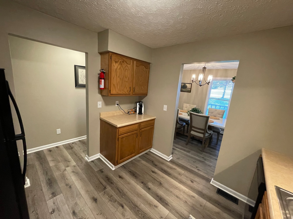 Bienvenue dans notre charmante maison récemment rénovée située à Wilmington, dans l'Ohio. Cette maison a été construite par le grand-père de mon mari en 1954 et est une propriété familiale depuis. Cet intérieur spacieux est équipé de tout ce dont vous avez besoin pour passer un séjour agréable et confortable. Nous sommes situés à 2 miles du World Equestrian Center, à 3 miles du lac Cowan, à 2,3 miles du parcours de golf Majestic Springs, à 6,5 miles du Wilmington Air Park et à 7 miles du Robert's Center. Cette maison dispose d'un nouveau système de chauffage, ventilation et climatisation.