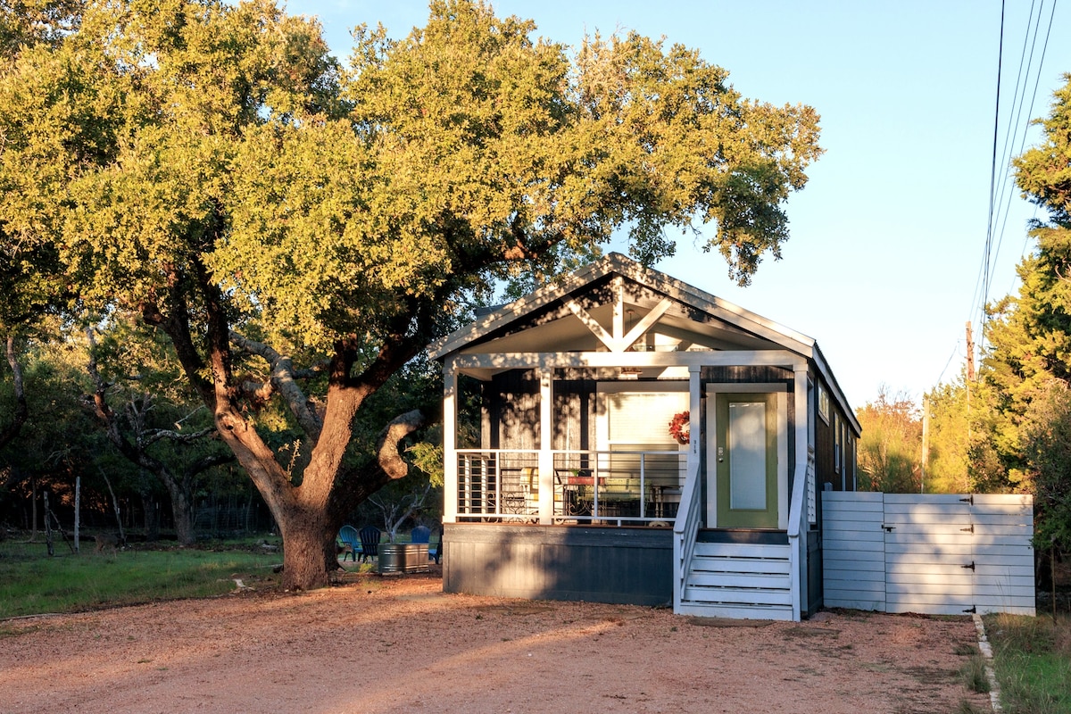 Cette retraite rurale astucieuse est un mélange de charme pittoresque et d'élégance moderne. Rapprochez-vous d'un être cher ou déconnectez-vous du monde. Admirez le coucher du soleil ou observez les étoiles en toute intimité depuis le porche ou le jacuzzi qui surplombe une prairie entourée d'arbres. Entrez dans un flot de lumière naturelle. Préparez un repas dans la cuisine entièrement équipée. Passez une bonne nuit de sommeil dans le lit king-size bio. Explorez les vignobles, les brasseries et les sentiers de randonnée à proximité. Austin est également à quelques minutes en voiture d'ici !
