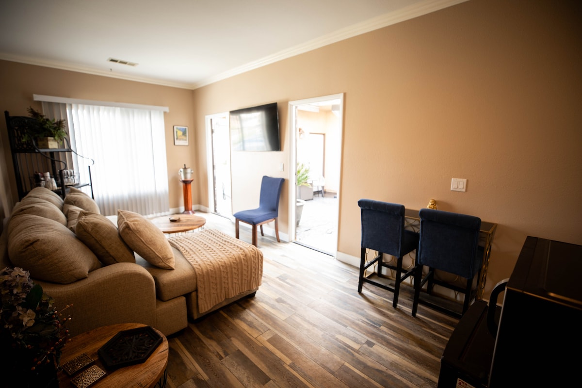 Évadez-vous à Wine Down Court Yard à Winchester, à quelques minutes des vignobles de Temecula ! Cet ADU propose : Chambre avec lit King Size moelleux Salon avec canapé convertible Une salle de bain privée avec des produits de base Kitchenette pour les repas légers À proximité des vignobles, des magasins, des restaurants et de la vieille ville de Temecula. Profitez d'une connexion Wi-Fi gratuite, d'une télévision connectée, d'une climatisation et d'un parking. Parfait pour les amateurs de vin, les couples ou les familles. Détendez-vous, détendez-vous et dégustez du vin dans cette retraite confortable !