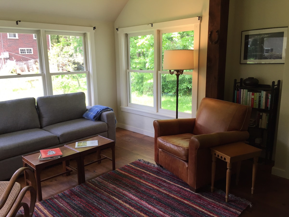 Notre studio (250 pieds carrés) est séparé de la maison principale et situé à la périphérie de Greenfield MA. L'emplacement offre un accès facile au centre-ville, aux restaurants, aux zones commerciales et à l'Interstate 91. Un décor moderne, une salle de bain carrelée et artistique, beaucoup d'art de jardin et une vue imprenable sur les contreforts des Berkshire en font un excellent choix pour la saison des feuilles, les loisirs d'été et le ski d'hiver. Un lit Queen Size. Notre maison se trouve à 90 miles à l'ouest de Boston, à 60 miles au nord de Hartford et à 3 heures de route du Canada.