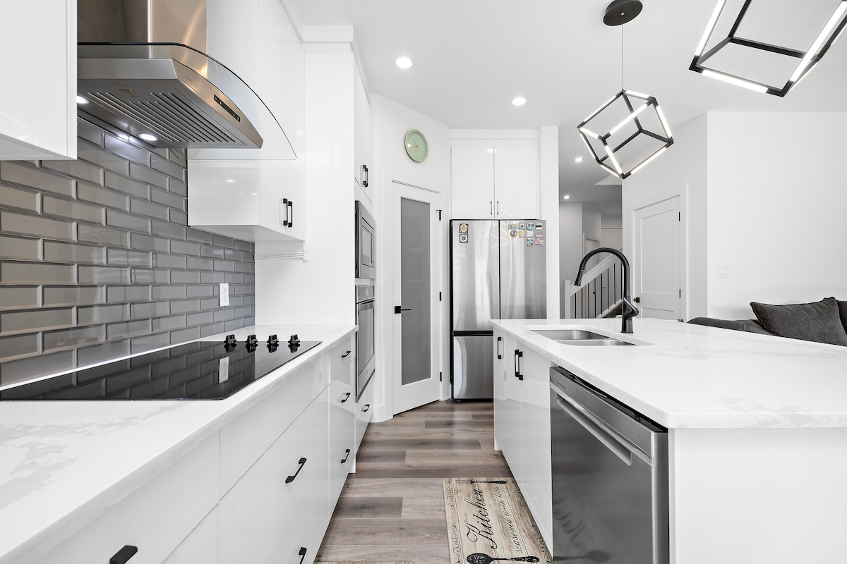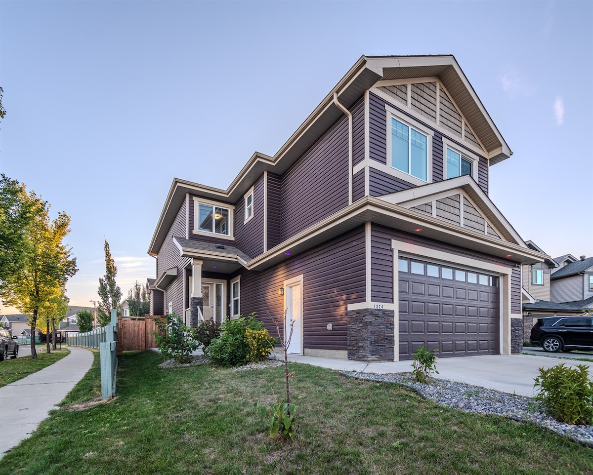 Nichée dans le charmant quartier de Keswick à Edmonton, notre maison de deux étages fraîchement construite allie élégance et confort, conçue pour rendre votre séjour inoubliable : Maison de 2 étages nouvellement construite Environ 1400 pieds carrés. Chambres : 3 (chambre principale avec lit King Size, 2 chambres avec lit Queen Size) Salles de bain : 2,5 Climatisation Double garage Divertissement : Apple TV WiFi ultra-rapide Buanderie sur place Cuisine entièrement équipée À 15 minutes de l'aéroport international d'Edmonton Proximité du quartier commerçant principal