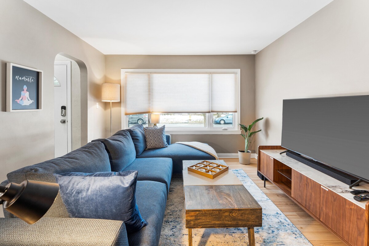 Bienvenue dans notre logement à 2 chambres et 1 salle de bain rénové dans le centre-ville de Windsor ! Avec une cuisine entièrement équipée comprenant des appareils électroménagers en acier inoxydable et des comptoirs en quartz et une télévision de 65 pouces avec Netflix dans le séjour, cet appartement offre tout ce dont vous avez besoin pour passer un séjour agréable. Situé à proximité des transports en commun, des magasins et des restaurants. Cet emplacement est dans un quartier calme à quelques minutes à pied du cœur du centre-ville. Réservez maintenant pour une expérience chaleureuse et pratique loin de chez vous !