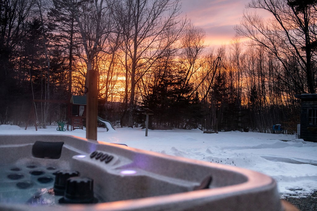 The closest Airbnb to Ski Martock Large pristine hot tub. Private self contained basement suite, with separate entrance. 2 king suites, full 3 piece bathroom & comfortable living room big screen tv kitchenette includes, Apartment sized fridge with freezer, Breville Smart Oven Pro Countertop Convection Oven, one induction burner, microwave, Keurig maker, toaster. Hot tub access from 11am-11pm Unit is not pet friendly Non smoking unit