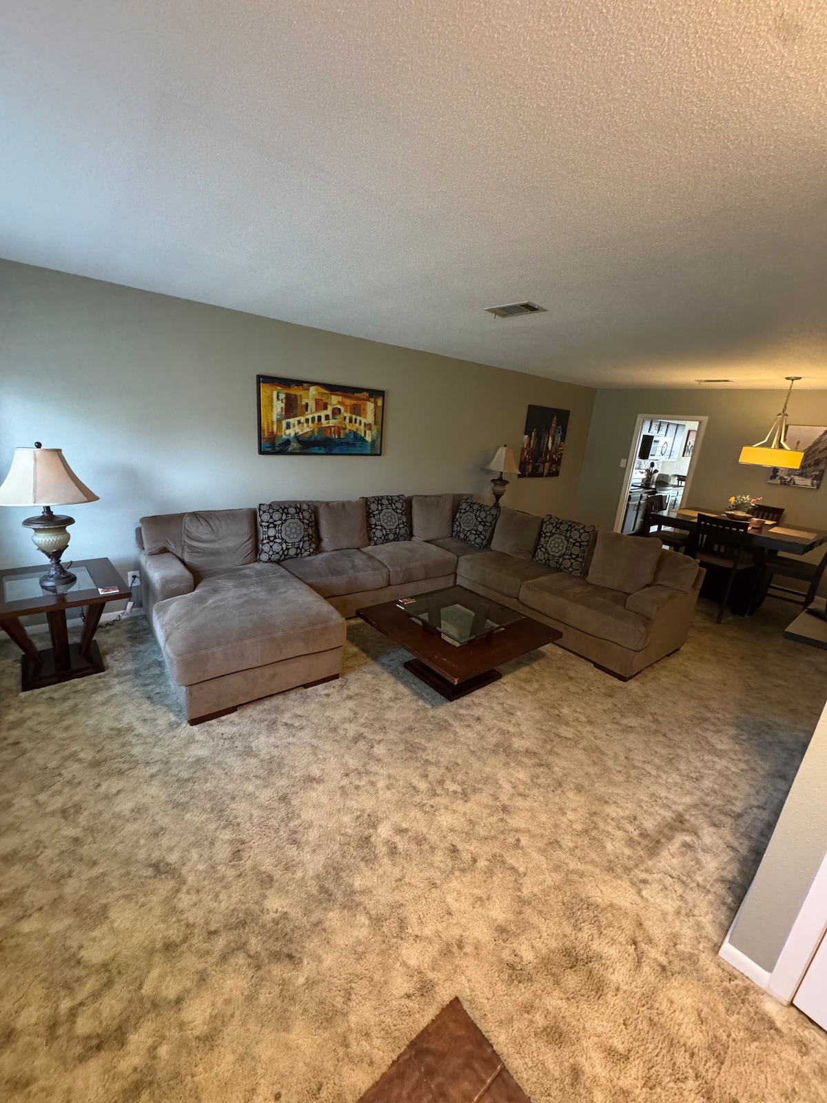 Cette belle maison de 3 chambres dispose de 2 salles de bain complètes, d'un garage spacieux pour 2 voitures et peut accueillir jusqu'à 8 personnes. Le séjour dispose de hauts plafonds voûtés complétés par un foyer au gaz confortable, tandis que le patio arrière serein offre un coin salon confortable, un foyer au gaz, un barbecue et une grande télévision. Idéale pour les familles et les professionnels à la recherche d'une alternative plus confortable et spacieuse à une chambre d'hôtel, et idéalement située à quelques minutes des principaux magasins, restaurants et hôpitaux.