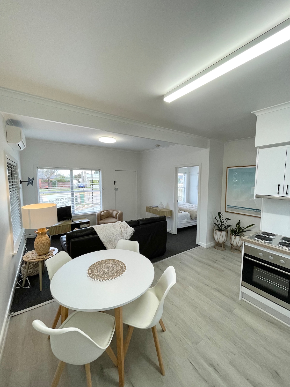 Take it easy at this unique and tranquil getaway. The three bedroom apartment is on the top floor of a two level property. It has street-level access requiring no stairs. From the moment the birds wake you, through to the gorgeous sunsets you will be mesmerised by the view of Lake King. Metung offers a variety of activities such as boating, fishing, sailing, walking and cycling. The State Forests and beaches are a short drive away. Metung village is a 1.5km walk or drive away.
