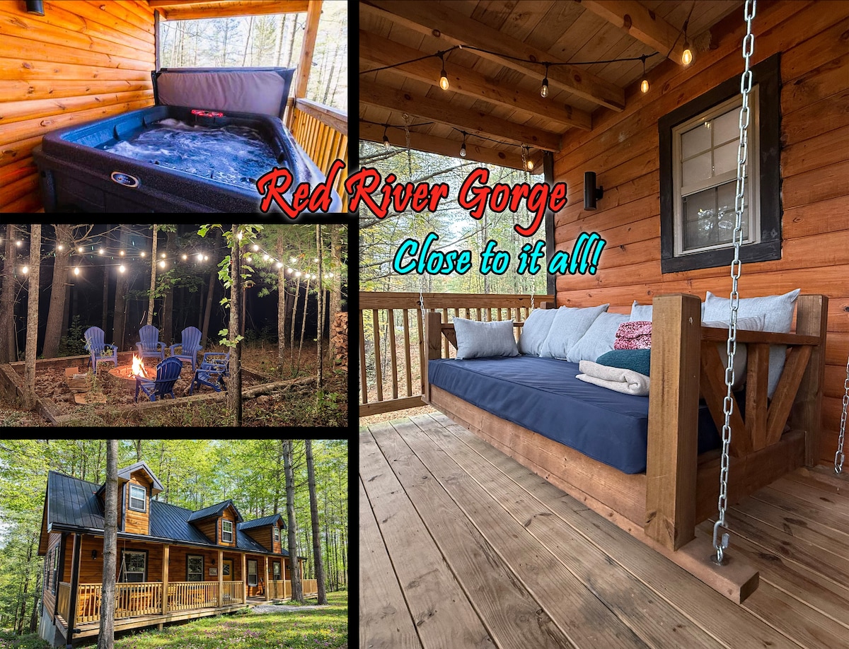 Cette propriété privée offre un accès rapide à Red River Gorge, Muir Valley (à 5 minutes de chacun), au parc Natural Bridge State Resort (à moins de 10 minutes) et à de nombreuses autres activités de plein air telles que la tyrolienne, le kayak et les sentiers de randonnée. Profitez de toutes ces activités, puis retournez dans une belle maison rénovée sur un terrain d'un acre avec des articles tels que des couettes cousues à la main et détendez-vous dans un nouveau jacuzzi 4 personnes dans un espace couvert près de la maison. Profitez également de balançoires pour adultes et enfants.