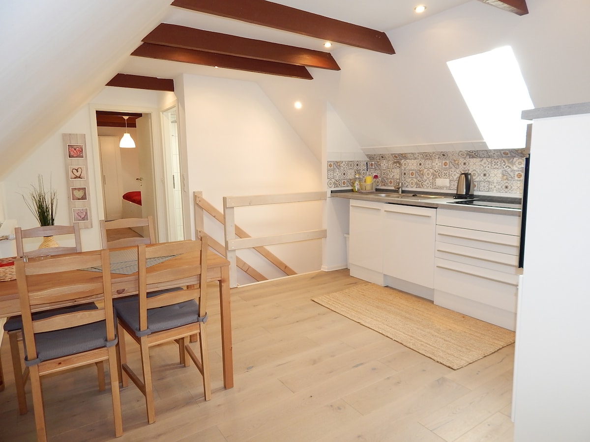 Tu passes la nuit dans notre appartement en duplex joliment meublé au milieu de la ville. Les commerces sont accessibles à pied (Rewe 2 minutes, Rossmann 2 minutes, restaurants au coin de la rue) Les enfants sont les bienvenus ! Un balcon est également disponible (voir photos)