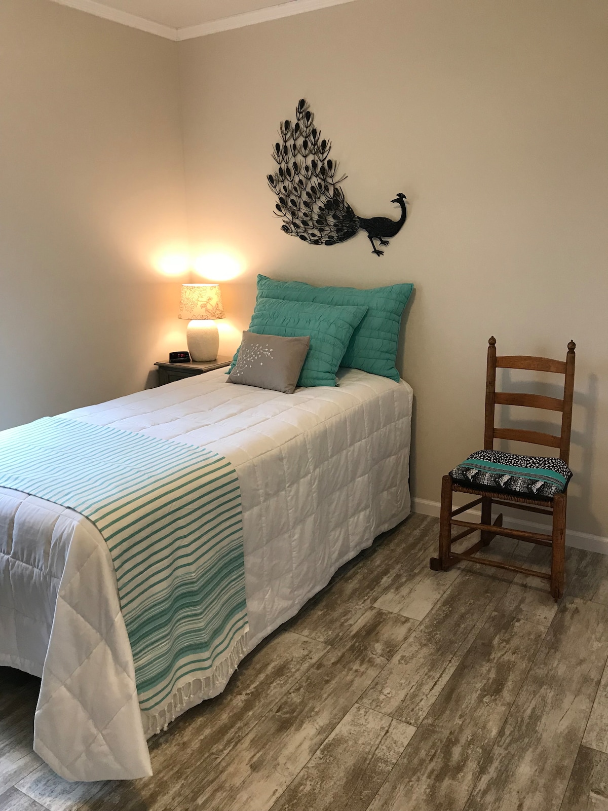 Détendez-vous avec toute la famille dans ce logement paisible. 3 chambres de plain-pied, 1 salle de bain, cuisine avec coin repas, salon et salle à manger. Cette maison se trouve à moins de 3-4 pâtés de maisons de notre épicerie, de notre station-service/supérette, des restaurants locaux (certains en saison) et du parc et de la piscine de la ville. Il y a une aire de stationnement dans l'allée, puis de la place supplémentaire pour 2 à 3 véhicules.