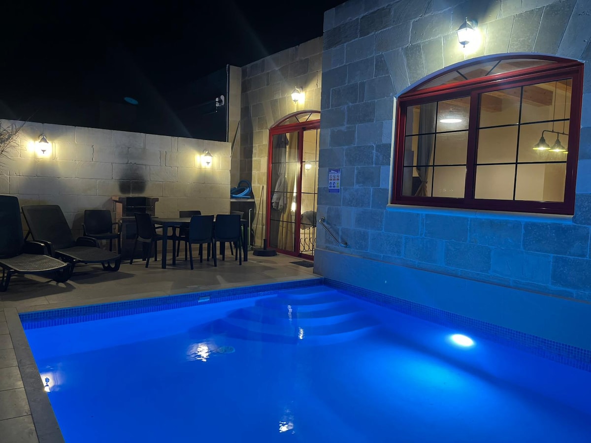 Évadez-vous dans les environs tranquilles de Gozo dans notre appartement de plain-pied unique situé dans le village pittoresque de Xaghra. Nos voyageurs bénéficient d'une piscine privée et d'une superbe terrasse, avec un barbecue et un coin repas extérieur éclairé par des festons. L'intérieur chaleureux offre une rare salle de spa avec jacuzzi, une cuisine complète avec lave-vaisselle, la climatisation partout, télévision connectée et une connexion Wi-Fi rapide. La base idéale pour une escapade relaxante, privée et isolée, tout en étant à proximité de la place animée de la ville.