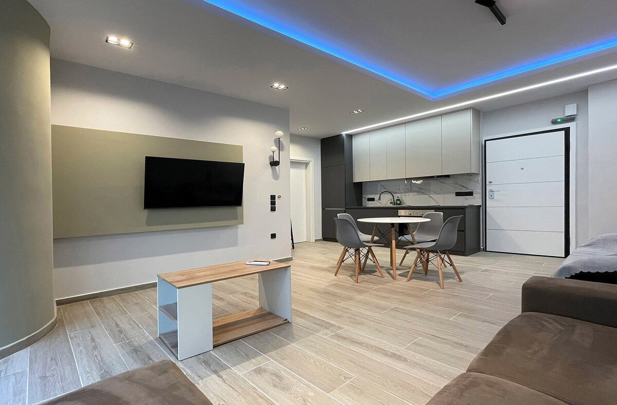 Un appartement magnifique et lumineux avec une vue magnifique sur la ville et les montagnes dans le centre de Xanthi, à seulement 2 minutes de la place principale. Il y a un salon partagé avec un lit queen. Salle de bain et grand balcon où les voyageurs pourront profiter du soleil. Jusqu'à 4 personnes peuvent accueillir. Il s'agit d'un tout neuf, entièrement rénové, propre, moderne et fonctionnel. Idéal pour en famille, en couple et en couple et en famille d'affaires. Fournit un accès immédiat aux divertissements, restaurants, shopping ainsi qu'un parking gratuit.