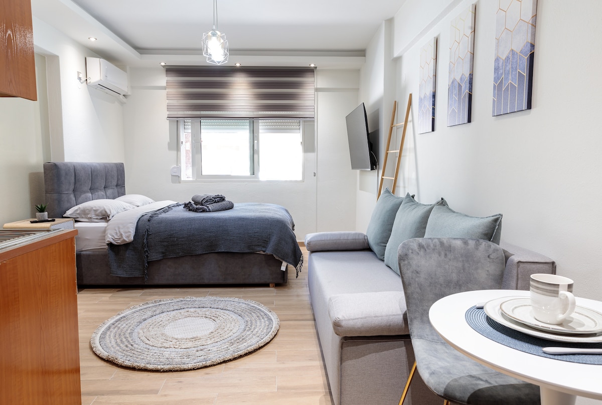 Profitez d'une expérience dans un logement élégant. Il est à deux pas de la place centrale de Xanthi, mais dans un quartier calme avec un accès facile à de nombreux points d'intérêt tels que le marché, les banques, le café, le bazar de Xanthi, la vieille ville, les tavernes, la vie nocturne. Studio bien pensé, propre et lumineux, entièrement rénové avec un lit double et confortable avec matelas anatomique et sur demande un canapé-lit simple et de nombreux autres équipements pour un séjour confortable. (Couple et enfant) ou (3 adultes).