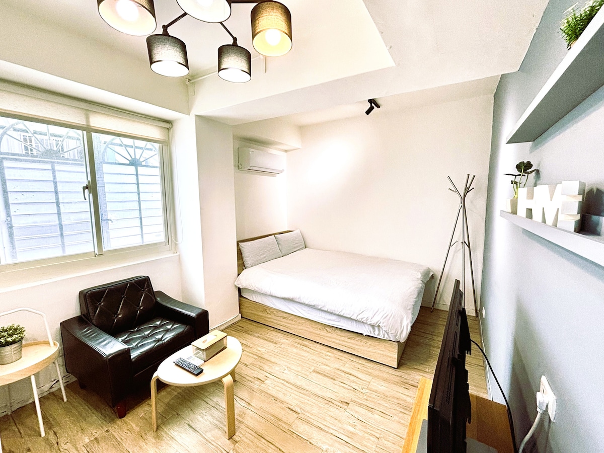 Bienvenue dans notre suite privée confortable dans le centre de Taipei, à seulement 7 minutes à pied de la gare principale de Taipei. Idéal pour les courts séjours, les voyages d'affaires ou les logements temporaires. Comprend un lit King size, une salle de bain privée, la climatisation, le Wi-Fi et des équipements de base. Des magasins, des restaurants et des transports en commun sont tous à proximité. Calme, propre et parfait pour les voyageurs en solo ou les couples. Séjours mensuels bienvenus : envoyez-nous un message pour connaître les tarifs longue durée.