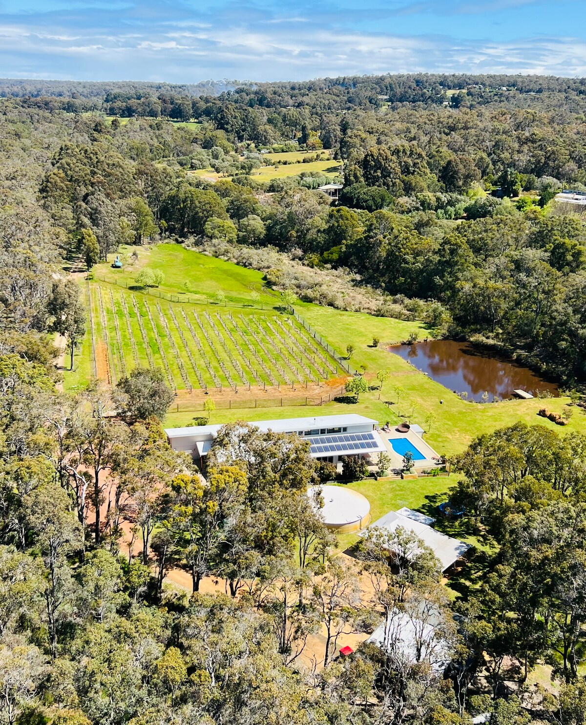 Avec son propre vignoble privé, cette propriété pittoresque de 10 acres est une véritable retraite ! Vous ne trouverez pas de meilleur endroit pour échapper à la vie quotidienne. Situé dans la région viticole de Margaret River, dans l'État de Washington, niché entre Yallingup et le quartier branché de Dunsborough, vous vous sentirez à des millions de kilomètres, mais si vous souhaitez vous aventurer, il y a tant à votre porte : de belles plages, des vignobles, des grottes, des sentiers pédestres et bien d'autres attractions touristiques. Pour toutes les saisons, piscine en été, feu de bois en hiver.
