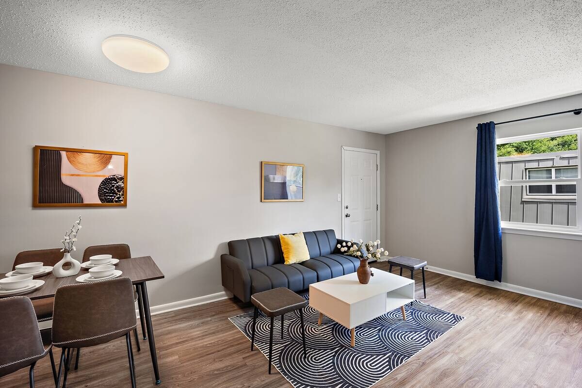 This newly renovated apartment is ideally located just 10 minutes from Amazon job sites, making it a fantastic choice for construction workers or business travelers. Step inside to discover a spacious living area filled with brand-new furnishings, designed for both comfort and style. Whether you're relaxing after a long day or getting some work done, you’ll find the space inviting and functional