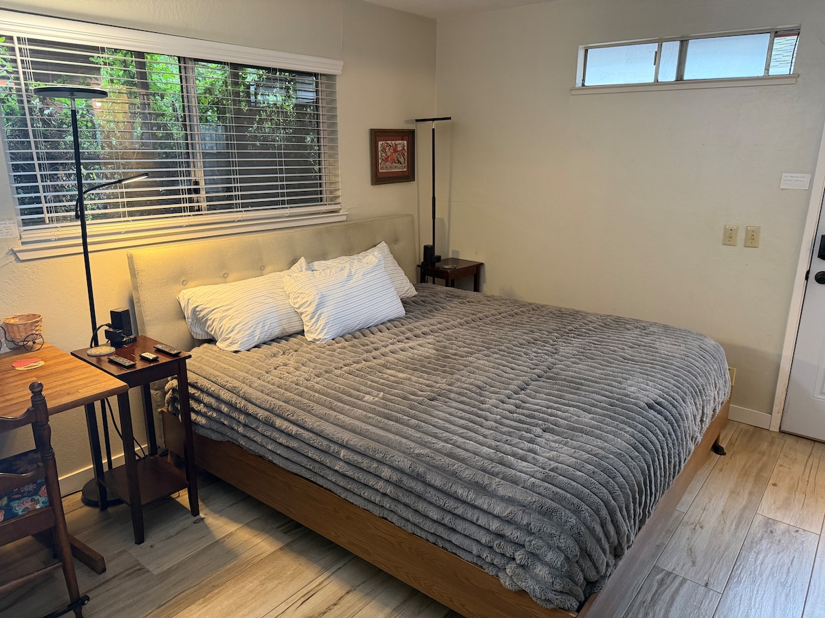Entrée privée avec auto-enregistrement. Salle de bain privée 15 minutes à pied de UC Davis, 20 minutes à pied du centre-ville de Davis Aucun espace partagé Frais de ménage peu élevés Remises mensuelles disponibles Animaux acceptés Tous les équipements nécessaires pour votre séjour à Davis. Réfrigérateur, micro-ondes, cafetière et incontournables pour manger loin de chez vous. Table pour manger ou travailler. Le téléviseur comprend Netflix, Amazon Prime, Hulu, Max Le matelas King est neuf en juin 2023, fermeté moyenne Nouveau revêtement de sol agréable novembre 2024