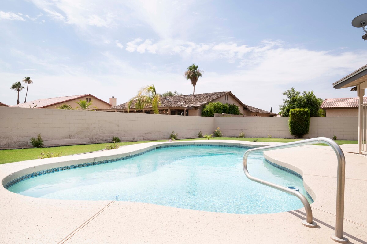 Cette maison relaxante et bien équipée de Yuma est idéalement située à proximité du lac Martinez ( le fleuve Colorado) et à quelques minutes en voiture du Mexique, des dunes de sable et d'un terrain de golf. Beau plan d'étage ouvert est parfait pour profiter des amis et de la famille. 3 chambres, 2 salles de bains et est situé dans une rue résidentielle calme. Internet rapide et espace de travail privé. La vie en plein air à son meilleur, comprend l'accès à l'ensemble de la piscine chauffée, au barbecue et aux jeux. Un logement idéal pour se détendre, jouer ou sortir et voir ce que Yuma offre !