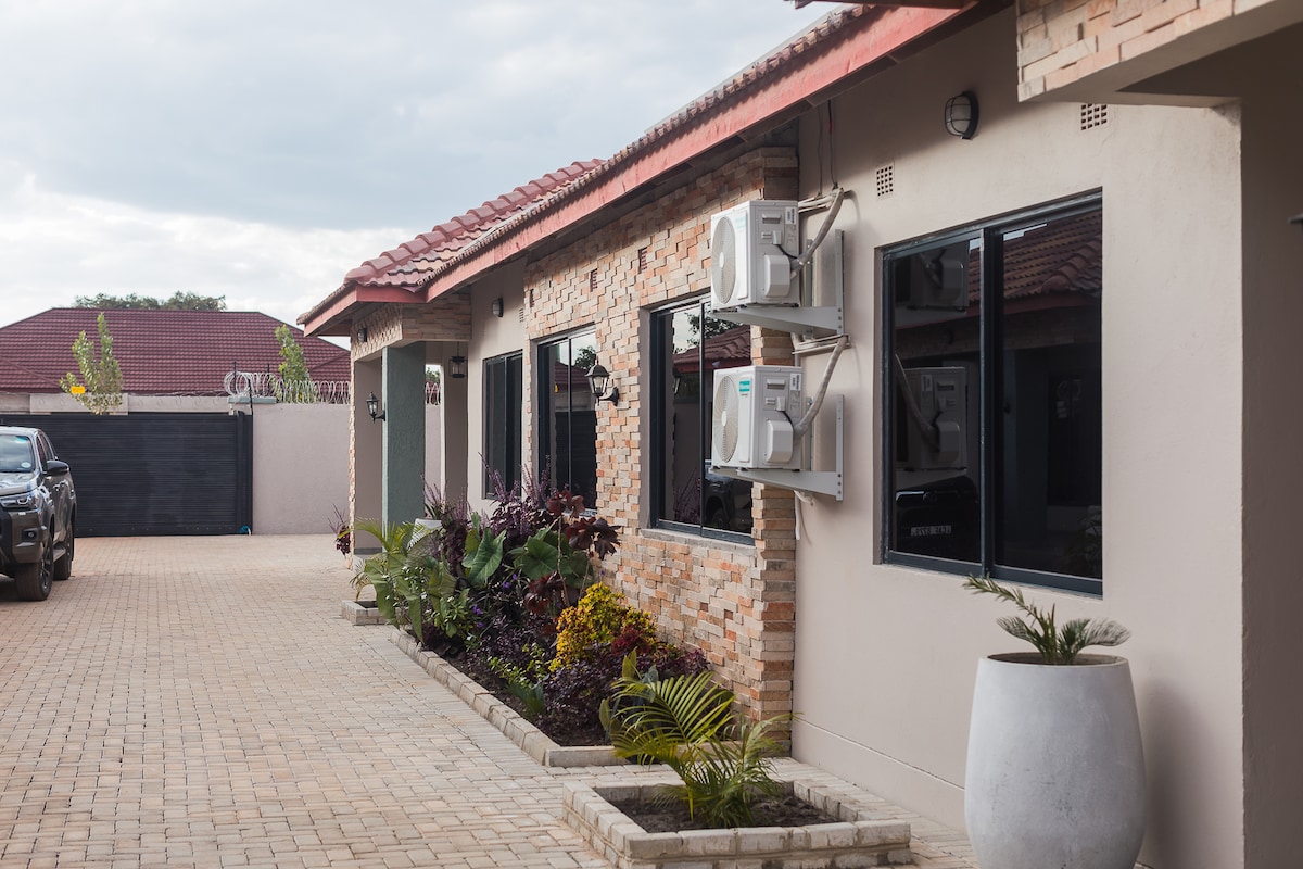 Maison moderne et élégante de 3 chambres, parfaite pour les familles ou les groupes. Spacieux, aménagement familial avec femme de ménage à temps plein, Wi-Fi, énergie solaire de secours, et les deux chauffe-eau solaires/électriques. À seulement 2 minutes du centre commercial Ibex et du Road House Grill, près de Grand Daddy's, à proximité de la route goudronnée et à quelques minutes en voiture de l'aéroport international Kenneth Kaunda. Confort, commodité et emplacement tout en un !