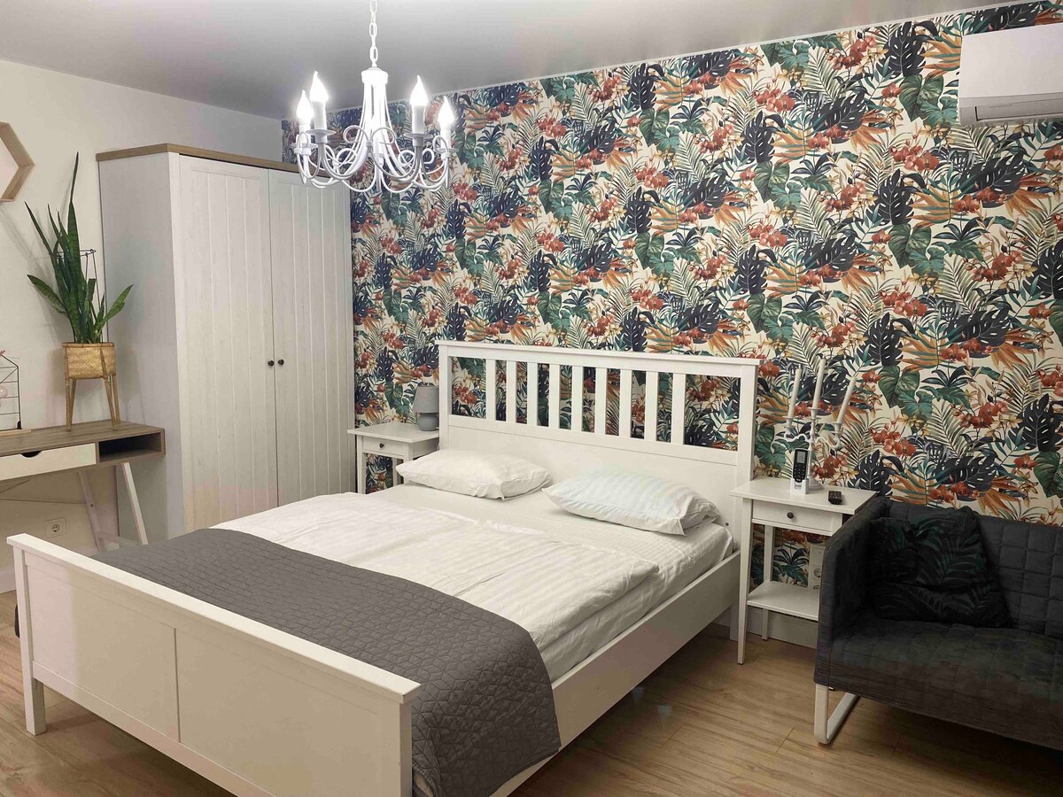 Profitez de l'ambiance élégante de cette maison du centre-ville. L'appartement avec une chambre séparée dans un nouveau complexe, où tout brille, sent frais et nouveau ! Parking disponible dans le complexe. Il y a tout ce dont vous avez besoin pour passer un séjour confortable afin que vous vous sentiez comme un voyageur bienvenu. Il y a tous les appareils et ustensiles nécessaires. Équipements de base : shampoing, gel douche, savon, papier toilette, serviettes douces et beaucoup de petites choses agréables et nécessaires. Séjournez chez nous et soyez reconnaissant !