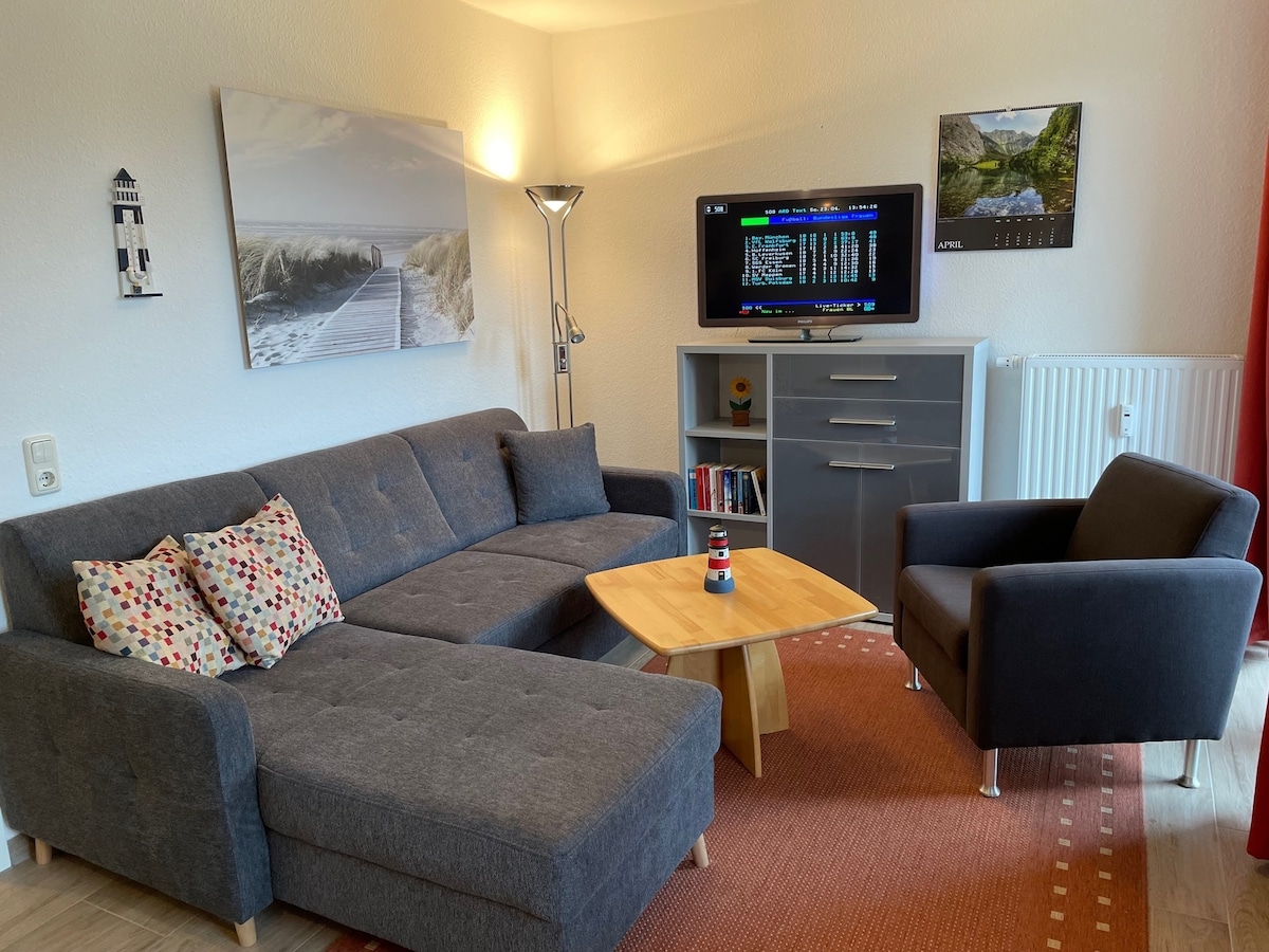 Notre appartement privé dispose d'une chambre, d'un salon avec cuisine ouverte, d'un balcon et d'une salle de bain intérieure avec baignoire à douche. Dans le complexe de la maison, il y a une piscine, un sauna, une petite salle de fitness et une buanderie à disposition gratuitement. Une place de parking privée ainsi que des places de parking pour vélos peuvent également être utilisées. La plage calme est à environ 200 mètres. La taxe de séjour sera facturée séparément à l'avance.