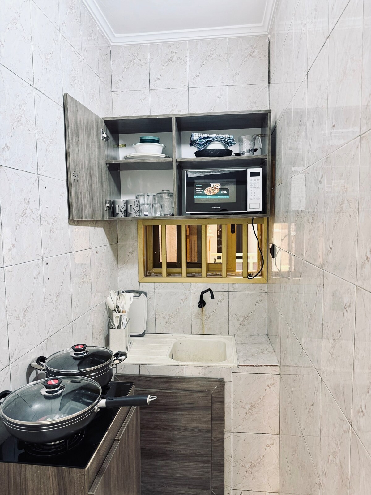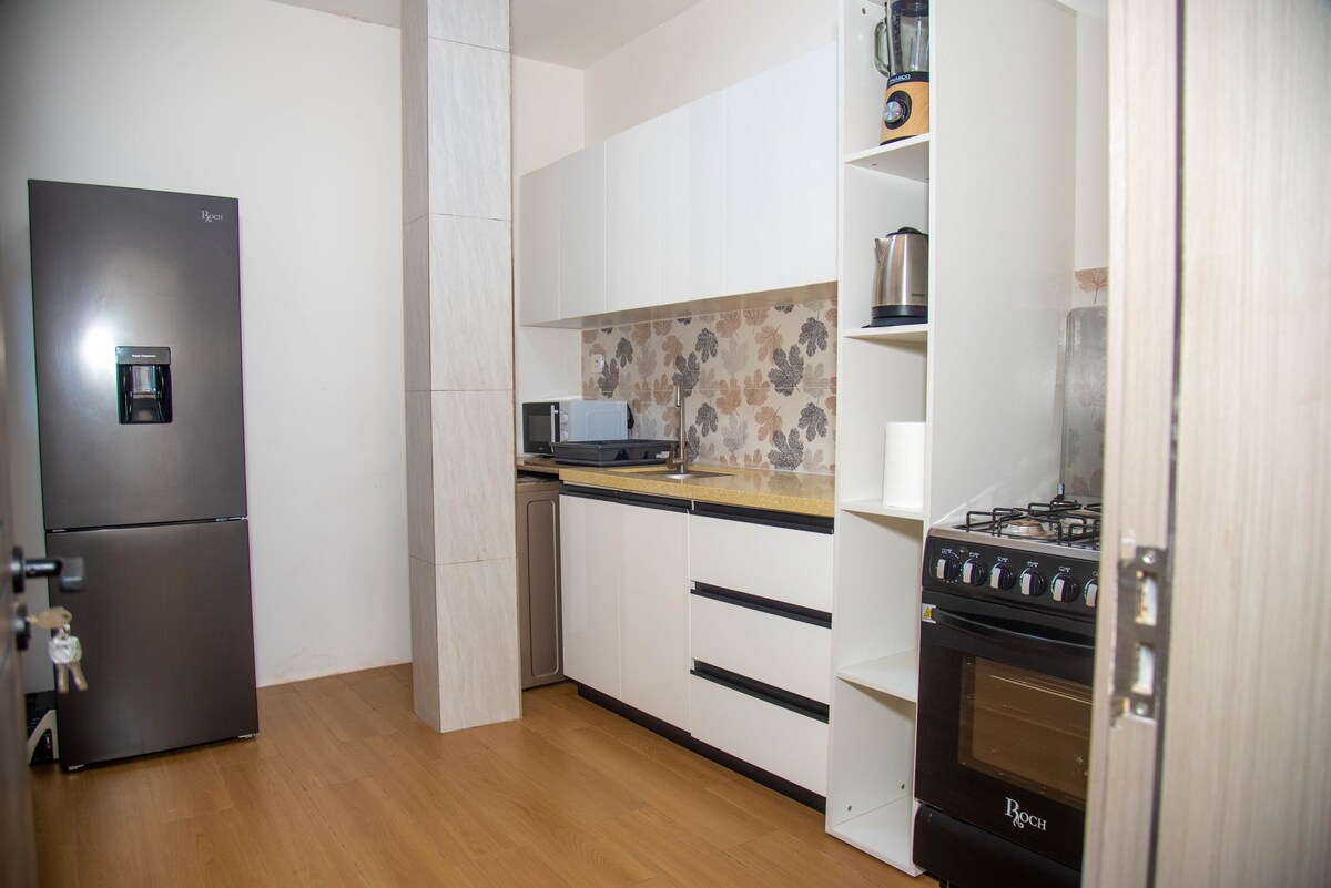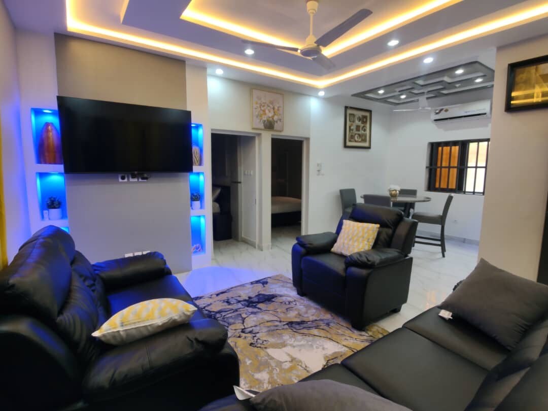 Profitez de ce logement chic et moderne. Au cœur de Lomé, non loin du marché ASSIYEYE, à 5 minutes de l’échangeur d’Agoe et de Filo Parc. -Toutes les pièces sont climatisées, -La cuisine dispose de tous les équipements modernes, -Le salon est équipé de tv smart et système hifi pour agrémenter vos instants détente, -Le Wifi est inclu dans l’offre. -Un concierge est présent 24h/24 en cas de besoin. -Un nettoyage par semaine à votre demande est inclu